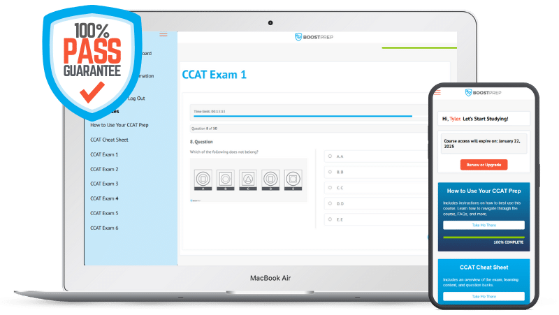 Have confidence heading into your exam after using our CCAT prep course. Covered by our 100% pass guarantee.