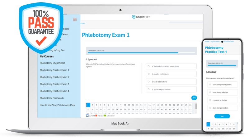 Have confidence heading into your exam after using our phlebotomy test prep. Covered by our 100% pass guarantee.